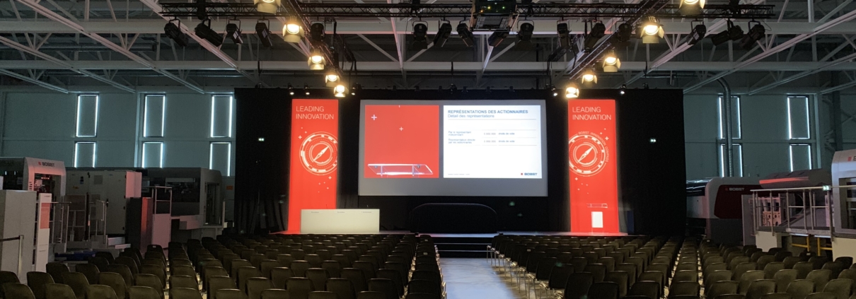 Prestation complète pour les espaces de conférences, d’accueil et de coktail ou gala ; habillages décoration, vidéo, sonorisation, lumière et structure.