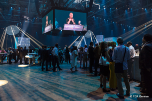 Mandatés par l’agence Events Concept, nous nous sommes chargés de la production technique. En découvrant les quelques images que nous vous présentons ici, vous comprendrez que le challenge était formidablement intéressant ! Vidéo projections – mapping, retro-projections, écrans plein jour, 4 scènes, éclairage d’ambiance et de spectacle, sonorisation… Un set up complet pour offrir une mise en scène étonnante au 4000 invités de l’économie genevoise et romande.