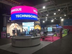 Salon des Métiers, Cité des Métiers, Salon Start, le contexte est moins classique qu’un Salon de l’Automobile, les stands sont moins flamboyants mais le public jeune et nombreux n’est pas moins attentif à ce que proposent les filières professionnelles. Dans ce cadre, Skynight a vendu un concept au Groupement Inter Mécanique Suisse, dans lequel un écran LED circulaire de 4m de diamètre fait beaucoup d’effet !