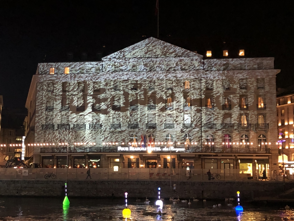 Le Geneva Lux festival et le mapping sur l’Hôtel des Bergues sont le rendez-vous idéal pour flâner dans la ville du bout du lac malgré le froid… 4 projecteurs Christie 30’000 lumens sont nécessaires pour couvrir parfaitement la façade de l’hôtel, ils sont placés sur l’île Rousseau à une cinquantaine de mètres et sont gérés par un mediaserveur X-Agora.